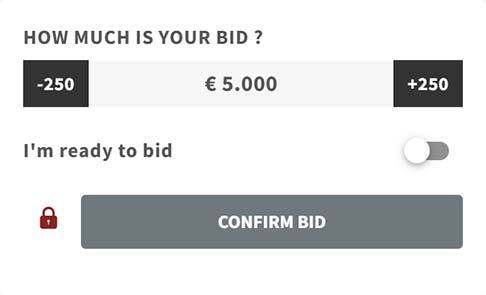 The bid steps increase up to a bid price of EUR 10,000 each by EUR 250, from a bid price of more than EUR 10,000 each by EUR 500 and from a bid price of EUR 75,000 by EUR 1,000. From a bid price of EUR 200,000 the bid steps increaseby to EUR 5,000.