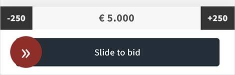 If you’re on a mobile device, you’ll see the "Slide to bid" button, which helps you avoid pressing the button by mistake. Select the amount you want to bid, and slide the red button to the right to confirm your bid.